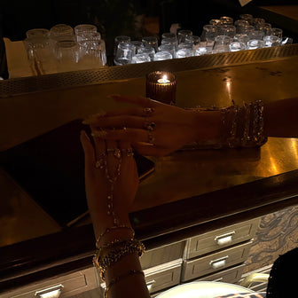 Best Seller: The iconic hand chain and ring stack.